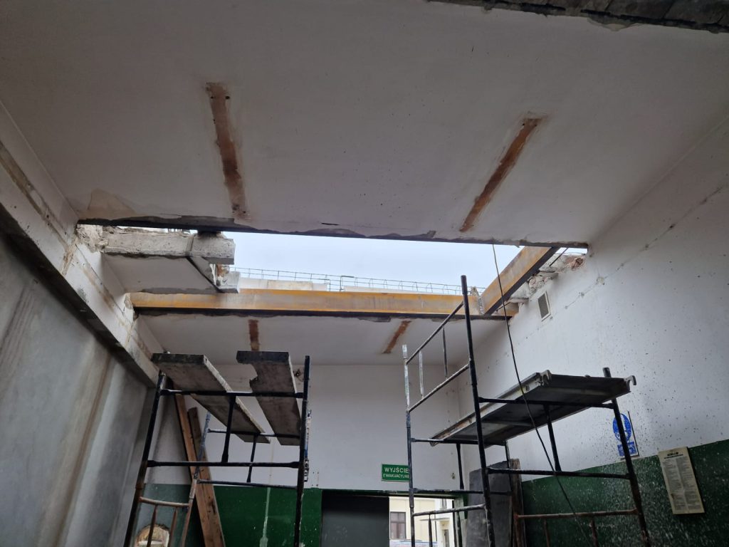 W marcu na placu budowy bardzo dużo się dzieje. Wykonane zostały wylewki i tynki wewnętrzne, został ocieplony i pokryty stropodach, w którym powstały duże przestronne otwory na świetliki dachowe. Na szczytach budynku dawnych warsztatów szkolnych zbudowano tzw. ogniomury. Wiele dzieje się również wewnątrz – trwają prace wykończeniowe i instalacyjne.